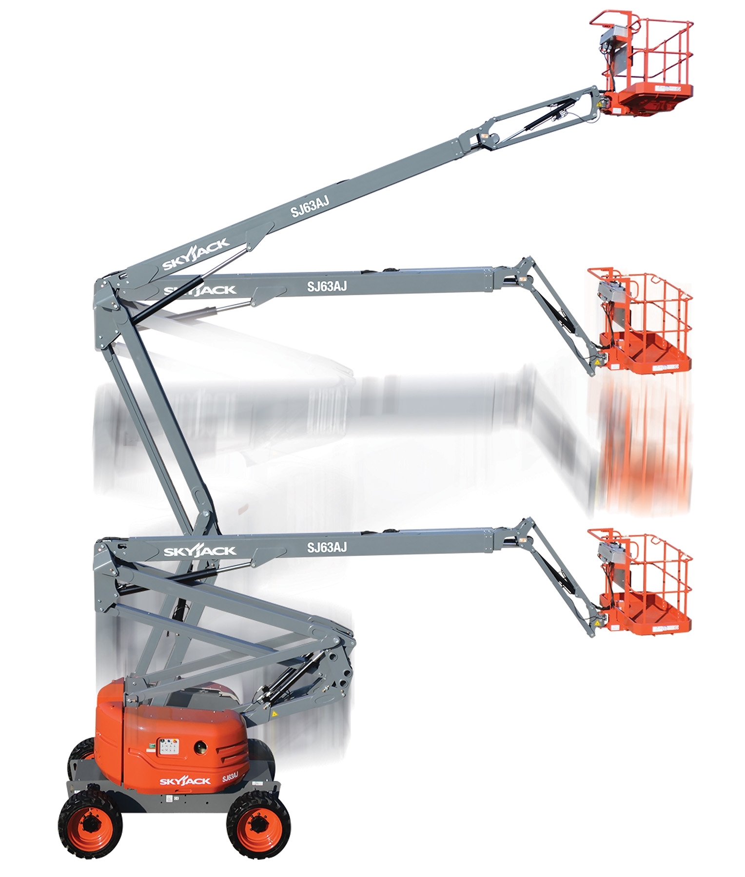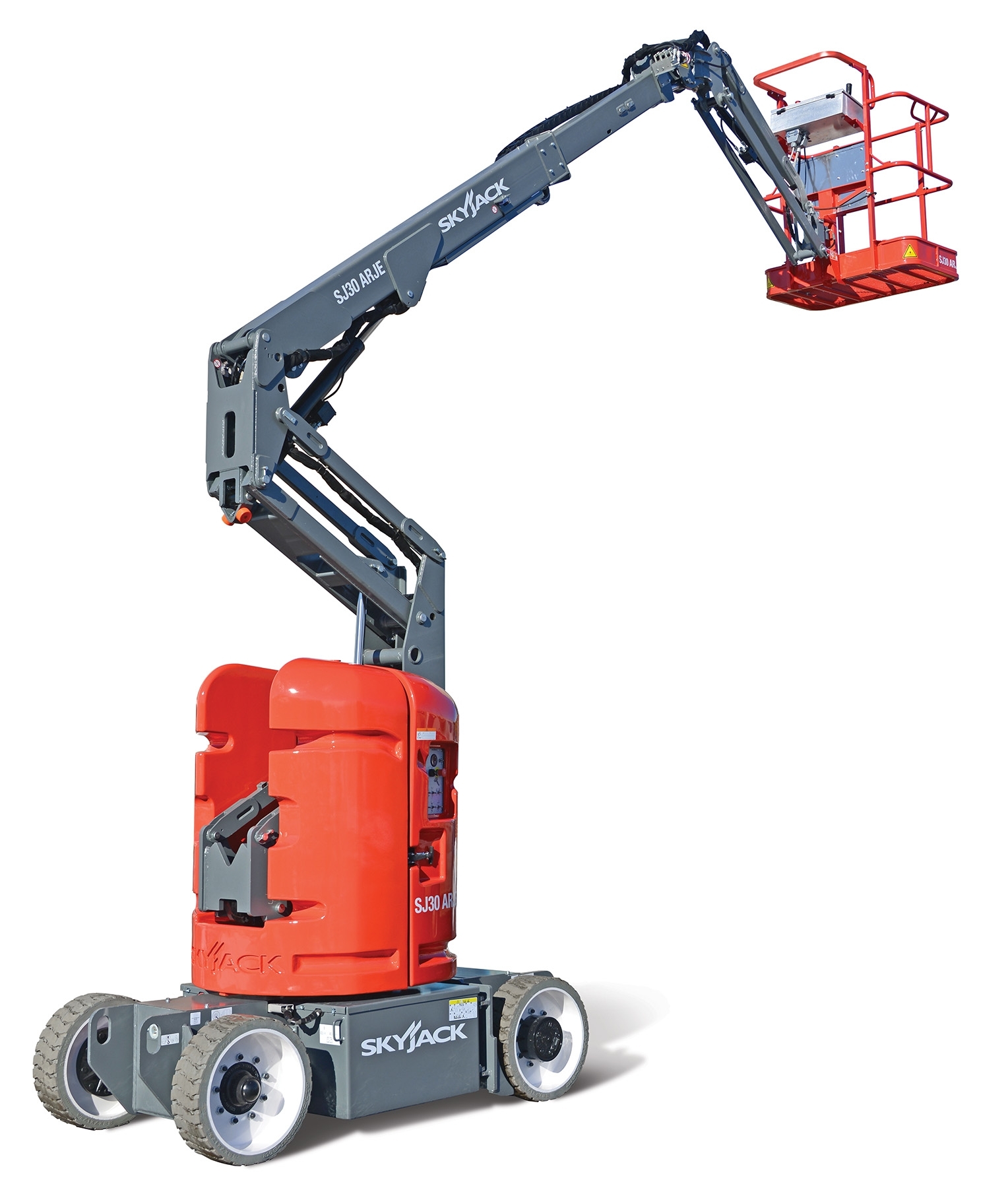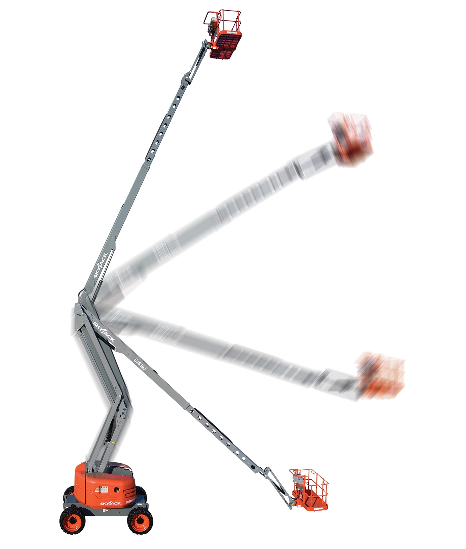 Skyjack articulating booms offer precise positioning capabilities packaged in a high-capacity boom with industry-leading up-and-over reach. The tight turning radius on these machines and minimal tail swing make them ideal for maneuvering in confined areas. Working heights for different models range from 10.82m to 27.74m.