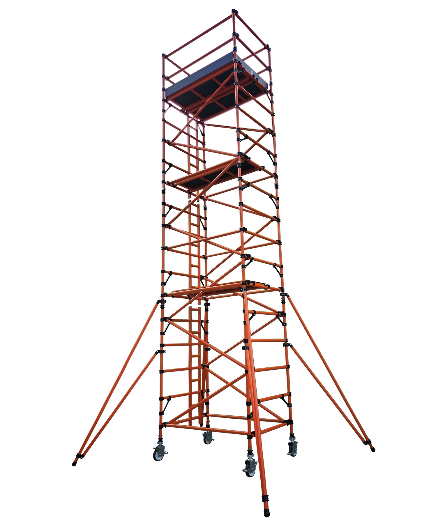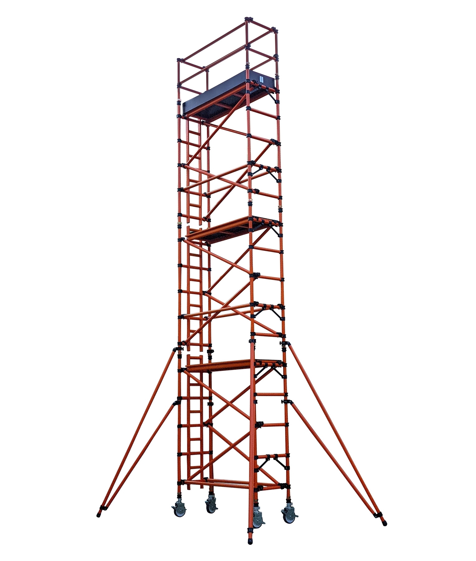Leader Fiberglass Scaffold Towers comply with EN1004:2004 and have CE Certification. There is a unique patented non-decending joint design within the frames to give rigid and stable tower assembly. Towers can be equipped with vertical or stairway ladders. There are choices of 0.46m and 0.5m per rung, which are available in working height ranges from 4.2m to 13.7m.