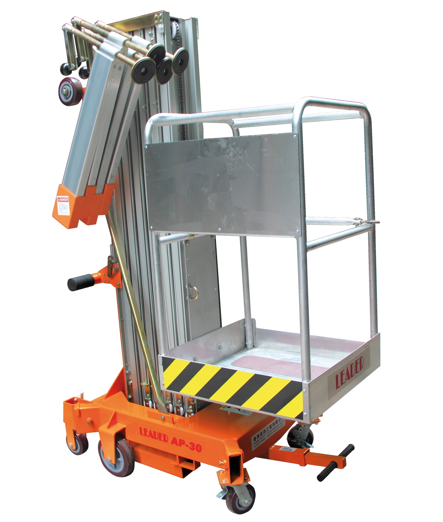 Leader AP Series Aerial Personnel Lifts are designed to meet ANSI A-92.3 1990, CAS, CE Safety Standard. The working height for different models ranges from 8m to 14m.